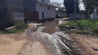 गांव के मेन रास्ते पर भरा पानी, ग्रामीणों का निकलना हो रहा मुश्किल
